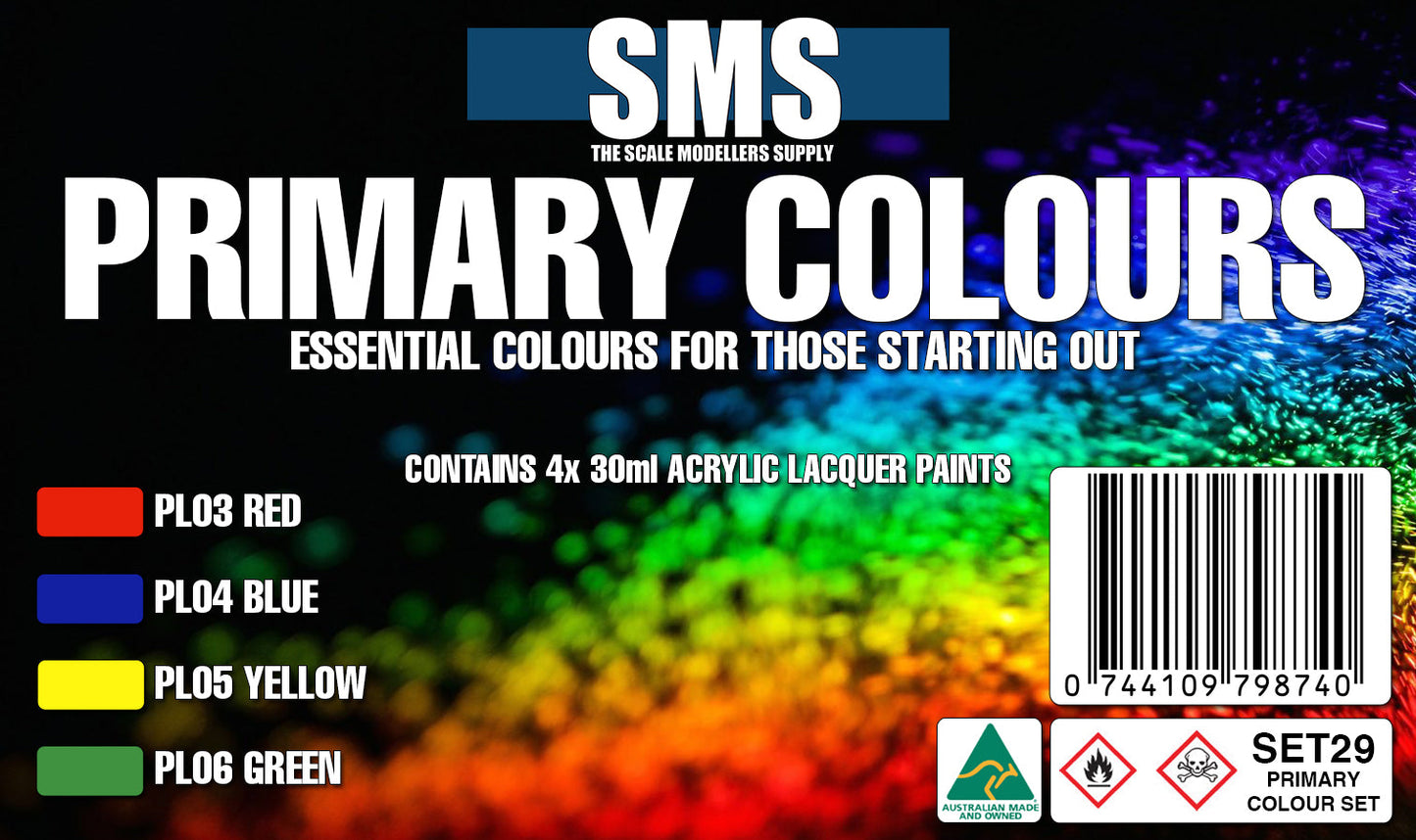 This Colour Set contains 4x 30ml Premium Acrylic Lacquer paints.
